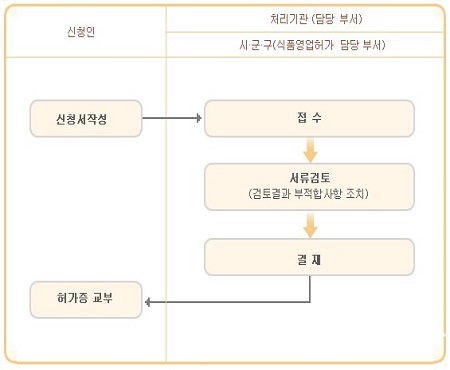 영업신고 : 휴게음식점업, 일반음식점업, 위탁급식업, 제과점업