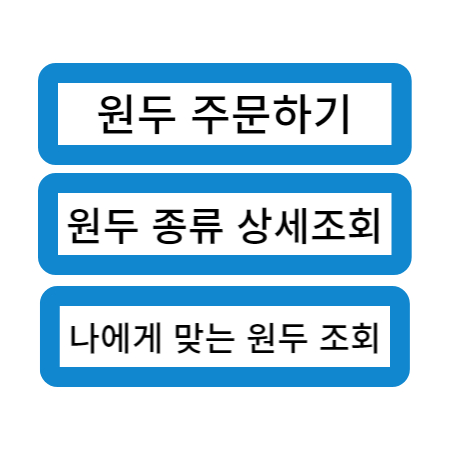 이렇게 많은 종류의 원두를 알아보았습니다.앞으로는 카페에서 당당히 내가 원하는 원두가 있는지 확인하여 맛있는 커피를 마시기를...원두는 주문부터 나에게 맞는 조회가 가능합니다. ↓↓↓↓↓↓↓↓↓↓↓↓